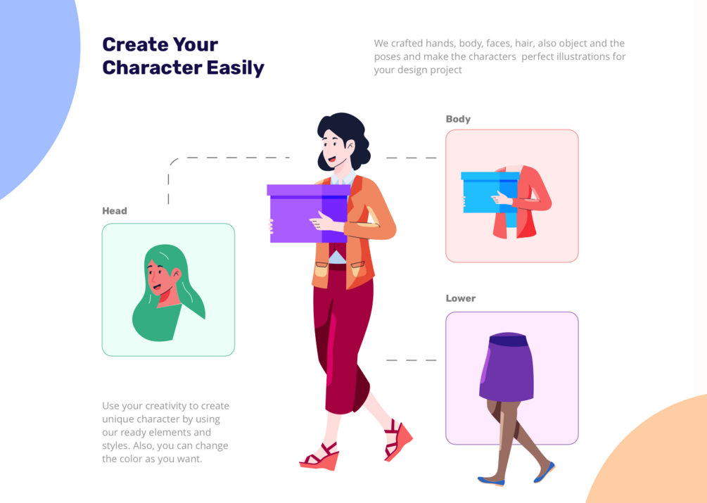 Creating Illustrations scenes is very easy! Use Sketch to mix and match the character and the object. There are unlimited combinations!